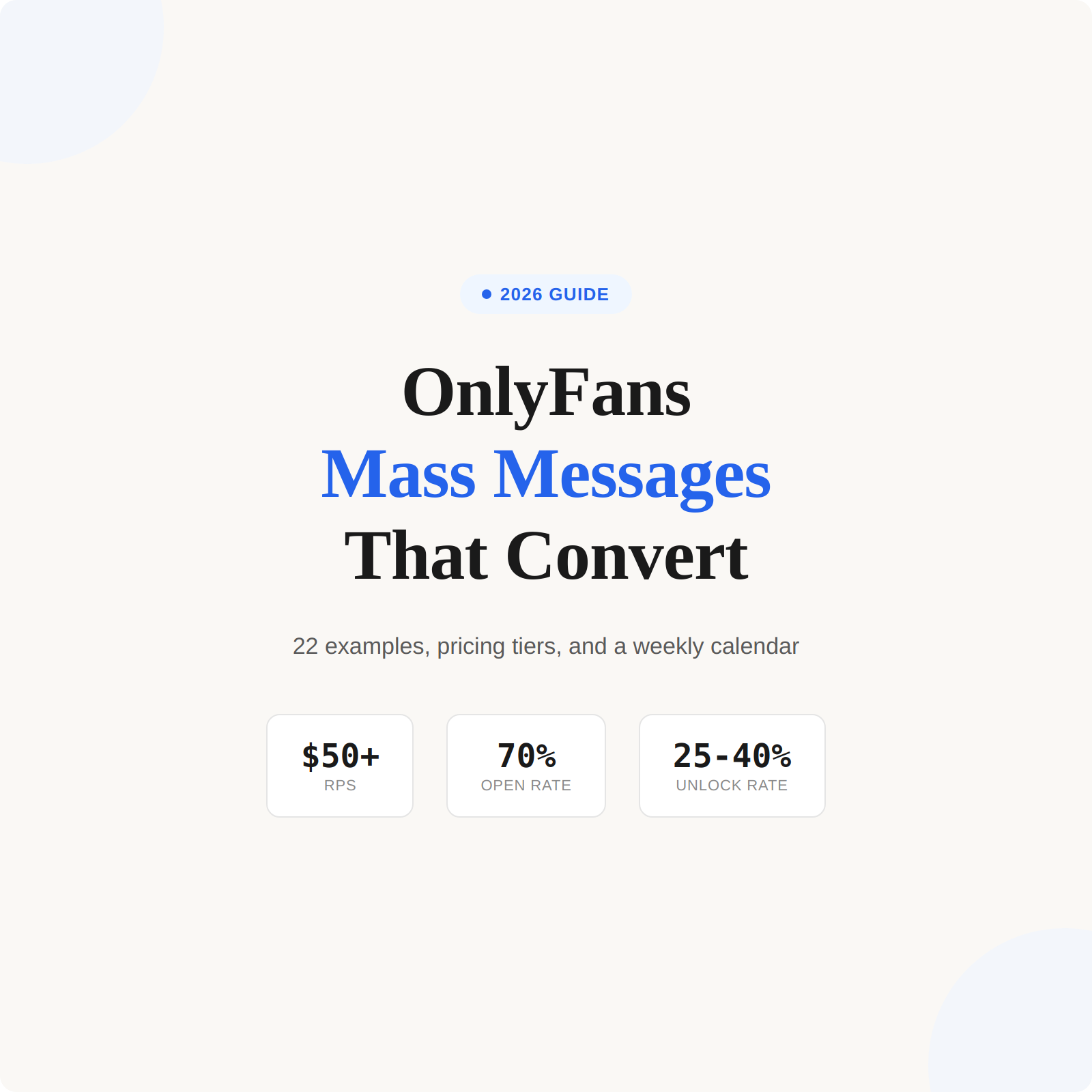 OnlyFans Mass Messages Guide: 22 Examples, Pricing & Weekly Calendar (2026)
